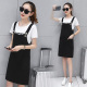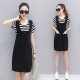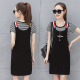 中长款连衣裙短袖2017夏装新款女装韩版潮夏季裙子假两件背带裙女