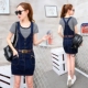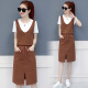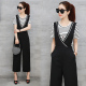 时尚套装女2017夏装新款女装韩版夏季短袖连体裤修身两件套背带裤