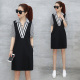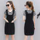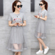2017夏装新款女装假两件套修身百搭春夏季裙子中长款短袖连衣裙女