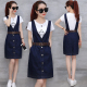 2017夏装新款女装大码连衣裙春夏季中长款两件套裙子牛仔背带裙女