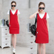 中长款连衣裙女短袖夏季套装裙子2017夏装新款女装两件套背带裙女