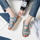 凉鞋女学生夏2017新款百搭魔术贴松糕底罗马鞋厚底牛仔露趾凉鞋子