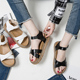 凉鞋女学生夏2017新款皮带扣复古罗马女鞋简约韩版百搭平底松糕鞋