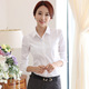 春秋女士韩版衬衣修身长袖纯色白衬衫简约百衫显瘦白领经理工作服