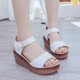 2017新款皮面高跟罗马厚底松糕凉鞋魔术贴运动休闲坡跟凉鞋女夏潮