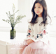 现货进口童装2017春款刺绣花朵开叉不等式儿童大码T恤