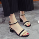 2017夏季新款韩版粗跟凉鞋女一字扣中空鞋露趾中跟女士罗马鞋女鞋