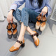 2017夏季新款尖头粗跟单鞋子方扣英伦包头拖鞋女中跟凉拖鞋女凉鞋