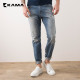 卡玛KAMA 夏装 牛仔裤男破洞小脚裤收口直筒裤潮 2216301