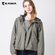 卡玛KAMA 春秋欧美短外套女连帽撞色宽松休闲显瘦夹克7316769