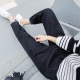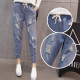 破洞牛仔裤女春秋装韩国新款显瘦学生松紧腰哈伦裤宽松小脚九分裤