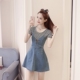 2017夏季绑带蝴蝶结吊带复古牛仔背带短裙连衣裙高腰显瘦韩版潮