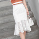 不规则鱼尾包臀裙 2017夏季中长款蕾丝半身裙 高腰韩版荷叶边长裙