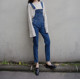 贞漫姿复古学院风高腰牛仔背带裤直筒宽松连体裤九分裤学生显瘦