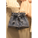 排扣蝴蝶结腰带显瘦高腰牛仔短裤女2016夏韩版阔腿卷边复古做旧