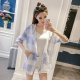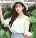 贞漫姿一字肩蝙蝠雪纺衫 2017春夏五分袖吊带宽松排扣衬衫上衣女