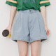 贞漫姿2017夏季新阔腿牛仔短裤裙松紧腰高腰浅色显瘦休闲热裤学生