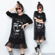 欧洲站春装女2017新款卡通蝙蝠袖T恤大码中长款宽松休闲连衣裙 潮