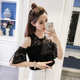 春夏装新款韩范宽松显瘦露肩蕾丝打底衫短袖镂空喇叭袖上衣服女潮
