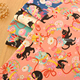 日本进口烫金和风布料 描金风车樱花娃娃 印花纯棉棉布 手工/服装
