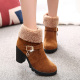 2016秋冬季新款时尚韩版粗跟高跟鞋女鞋潮靴子女靴短靴棉靴冬鞋潮