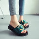 手工上线2017新款拖鞋女金属方扣厚底凉拖鞋百搭女式一字拖凉拖鞋