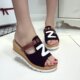 2017新款坡跟松糕底凉鞋女夏季中跟一字拖凉拖鞋高跟防滑厚底女鞋