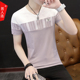 夏季青少年短袖t恤男假两件长袖衬衫领上衣服潮中学生韩版打底衫