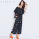 RARAMAX高腰直筒印花裤子女雪纺吊带阔腿裤连体裤女春夏季九分裤