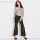RARAMAX网纱拼接 复古黑色高腰喇叭裤时髦百搭显瘦休闲裤女九分裤