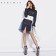 RARAMAX个性拼接 帅气呢子外套女短款黑色长袖原宿风夹克宽松潮