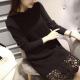 秋冬中长款宽松套头毛衣女拼色打底衫春装新款针织连衣裙潮