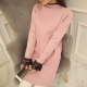 秋冬宽松蕾丝拼接中长款套头针织衫女春装新款打底毛衣裙