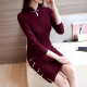 秋冬新款中长款打底毛衣女韩版半高领宽松套头针织打底衫厚毛衣裙