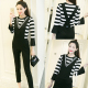 2017大码女装夏宽松条纹七分裤套装女胖MM200斤休闲两件套学生潮