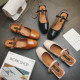 2017夏季新欧美时尚中跟粗跟一字扣包头凉鞋方头浅口奶奶鞋女鞋子