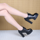 2017秋季复古渐变色漆皮系带低帮女鞋英伦风粗跟防水台高跟鞋单鞋