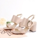 茶微微定制欧洲尖货女夏进口真丝绸缎金属圆扣粗跟高跟一字扣凉鞋