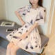 2017夏季女装韩版学院修身A字裙漏肩短袖印翠花棉麻显瘦连衣裙潮