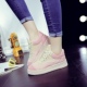 2017韩版磨砂圆头小清新粉色平底运动鞋女系带百搭休闲板鞋女单鞋