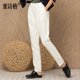 春秋白色亚麻女装棉麻女裤大码宽松小脚裤子女休闲裤哈伦裤女长裤