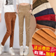 秋冬灯芯绒女裤加绒加厚松紧腰小脚裤休闲裤高腰弹力条绒裤女长裤