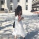 韩国chic仙女气质刺绣蕾丝吊带连衣裙夏中长款显瘦学生白色长裙