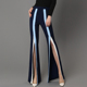 高腰阔腿裤女夏2017新款潮运动条纹九分裤显瘦开叉喇叭裤女长裤子