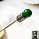 B56大颗马来玉绿色苗银 纯铜手工发饰旗袍头饰古典盘发清朝发簪子