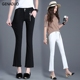 鱼尾喇叭裤女春季2016新款九分裤韩版高腰毛边弹力显瘦黑白微喇裤