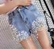 欧洲站2017夏装新款时尚百搭重工钉珠立体花朵破洞牛仔短裤女热裤