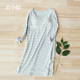 黄小姐 春秋款条纹带胸垫中长款睡衣薄 长袖宽松家居服睡裙女