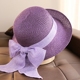 夏季平顶英伦草帽小礼帽女蝴蝶结海边沙滩帽韩版白色草帽遮阳帽