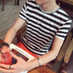 2016夏装韩版时尚条纹体恤男士圆领打底衫修身学生短袖t恤小衫潮